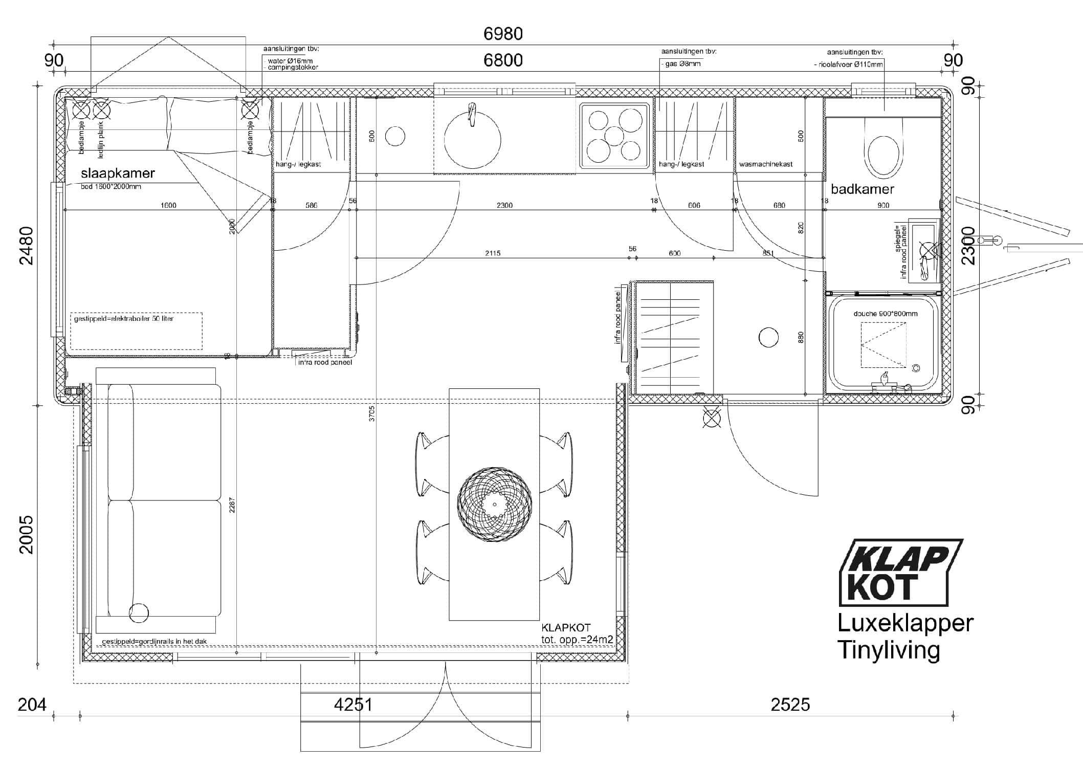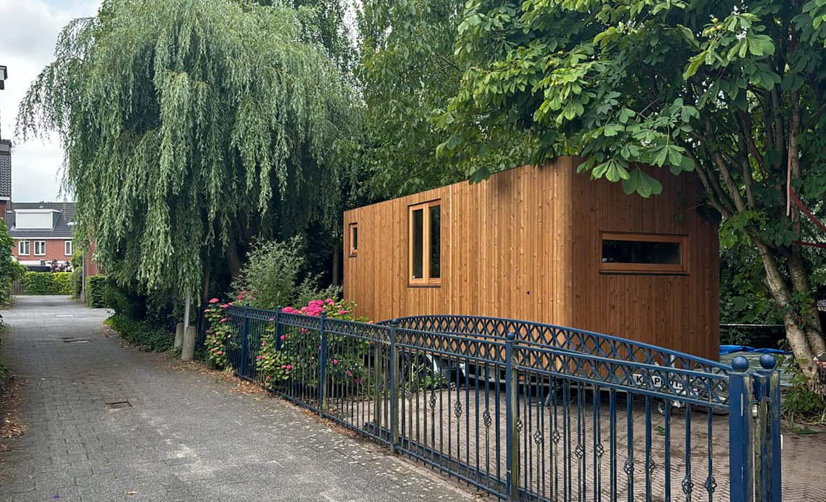 Voor deze klant leverde wij een Grootklapper om in te wonen. Met ruimte in de tuin en een verhitte woningmarkt, was de keus snel gemaakt. Een plekje voor zoon of dochter in de tuin, hoe fijn is dat! Deze Grootklapper is extra bijzonder, samen met de klant hebben we een Grootklapper Tiny Living ontworpen, een indeling die echt ideaal is om in te wonen op plekken waar ruimte beperkt is. Zo zie je maar weer, Klapkot is flexibel. En, over vijf jaar verhuizen? Klap hem in en verleg je grenzen!